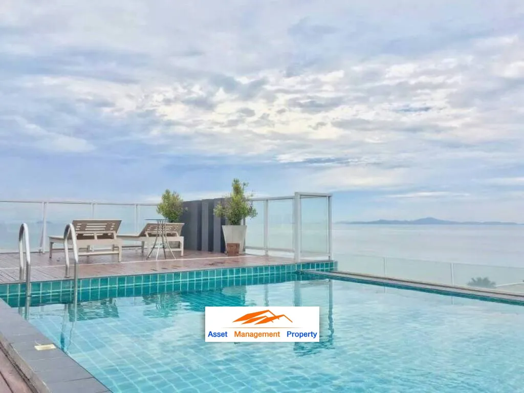 sea view condominium Wonderful sea view from the roof swimming pool 1 bedroom 30 sq.m. on the second floor almost new and located in a great area of Jomtien this spacious condo has beautiful interiors and is fully furnished. European kitchen luxury bathroom 2 air conditioners elegant living room from the roof swimming pool