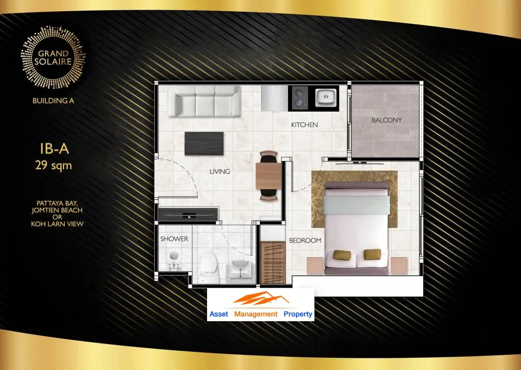 Grand Solaire Pattaya, a new dimension of the ultimate luxury condominium with the most stunning scenery of Pattaya Bay, Koh Larn, and Jomtien Beach. Elevate living quality with a 5-star service and modern interior design with premium furniture. Complete with excellent facilities and ideal location for traveling to many attractions and local amenities to satisfy the residents' diverse needs.