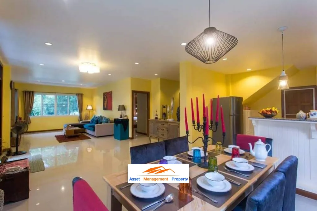 Experience the ultimate relaxation and luxury living in this stunning 3-bedroom house, complete with a private pool in the coveted Bangrak area. The spacious ground floor boasts a well-appointed kitchen with a dining area, perfect for hosting gatherings, and a comfortable sitting area. A large bedroom with an ensuite dressing room and two modern bathrooms offer a peaceful sanctuary to retire to after a long day. The upper level features two more chic and cozy bedrooms, each with their own dressing room and a shared bathroom.