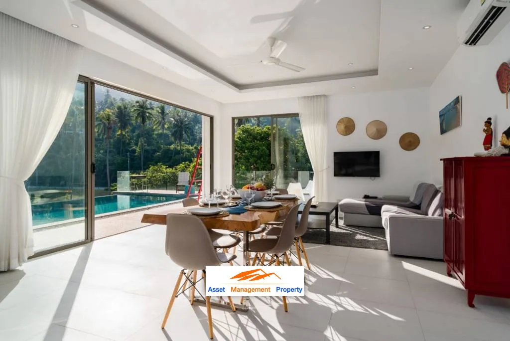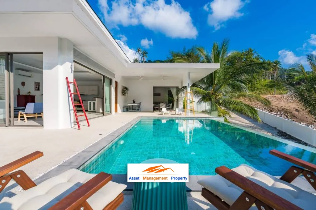 Each villa boasts 3 spacious bedrooms, plus an additional room that can be used as a bedroom or office, and 2 modern bathrooms. Relax in your own private pool and soak in the breathtaking mountain views. These villas are perfect for those who want to enjoy a tranquil, serene lifestyle, whilst earning a passive income from the second and third properties. Located a stone's throw from Chaweng Noi beach, and PBISS (British International School), these properties are ideal for both short and long term rentals. They have no common area fees, therefore the cost to maintain them is very low.