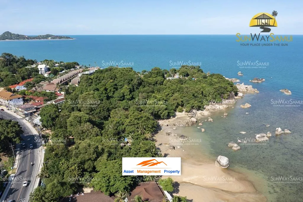 s absolute beachfront land is situated in the prime location of Lamai just by the main island ring road. The land is tucked in a corner of a bay with white sandy beach which is very suitable for the development of a five-star hotel/resort or condominium. Initial development plan available on request.