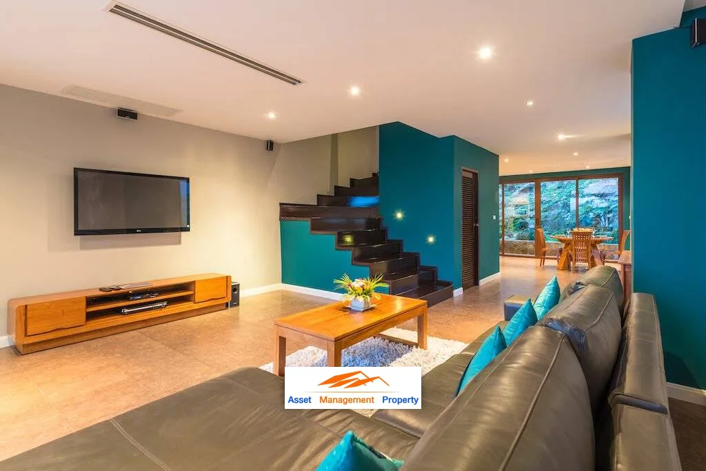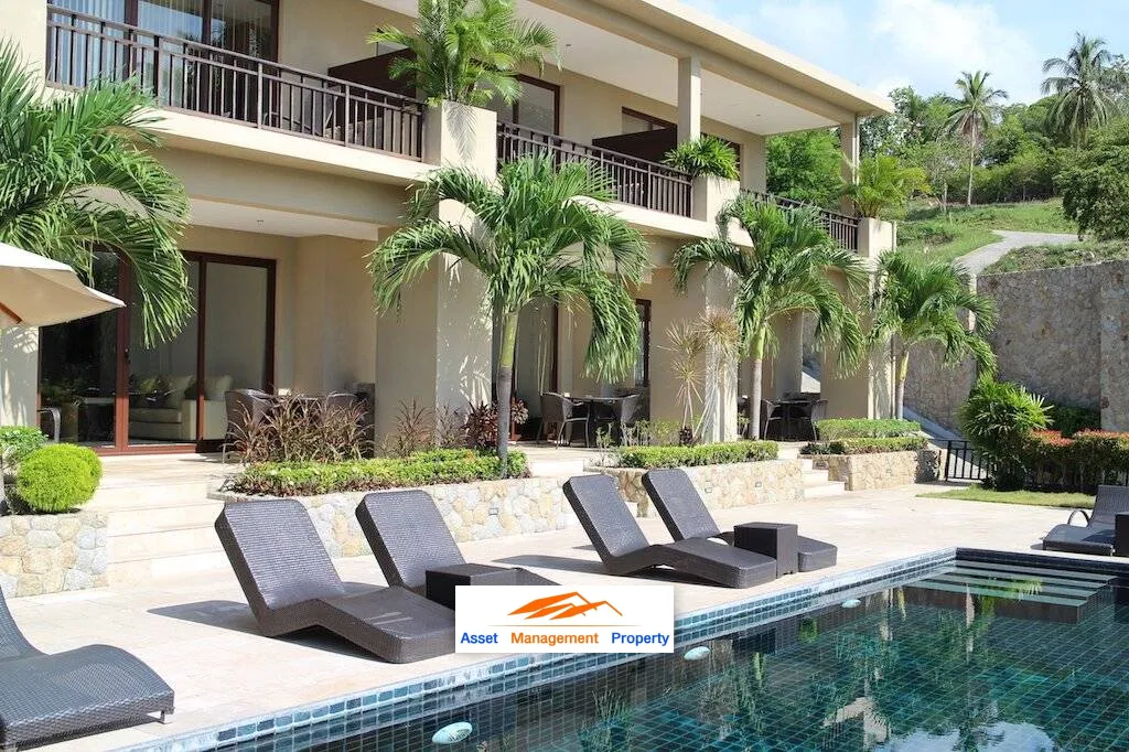 The Rockwater development in Chaweng, Ko Samui savors some of the most expressive views over Chaweng Bay and Koh Mat Lang. The townhouse is fronted by a panoramic sea view swimming pool and patio shared between units where residents and guests can sunbathe or recline poolside and soak in the glorious vistas all around. Afterwards, this northeast coast location invites a splendid array of exciting excursions just minutes to golden sandy beaches and warm Gulf waters, plus vibrant nightlife and other invigorating entertainment. A perfect residence for year-round living, a fantastic second home or holiday rental, now is the time to enjoy the full Rockwater experience — Call Today & Arrange A Viewing !!