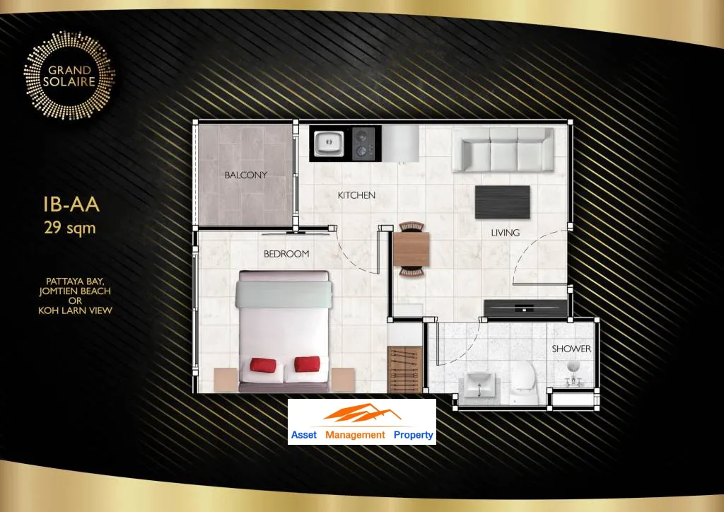 Grand Solaire Pattaya, a new dimension of the ultimate luxury condominium with the most stunning scenery of Pattaya Bay, Koh Larn, and Jomtien Beach. Elevate living quality with a 5-star service and modern interior design with premium furniture. Complete with excellent facilities and ideal location for traveling to many attractions and local amenities to satisfy the residents' diverse needs.