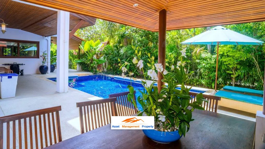 Escape to the private, amenity-rich Baan Leelavadee at Shiva Samui, peacefully situated on the tranquil shores of Koh Samui this is an exceptional property for sale. Elegance, sophistication, and supreme panoramic rooftop views of the sea, beach and lush jungle greenery await your ultimate pleasure. The exquisitely designed Thai style architecture offers three floors of relaxed luxury with plenty modern touches to behold. Comprised of 4 bedrooms, Baan Leelavadee wraps itself around the scenic beauty of a blue tiled swimming pool, framed by lush tropical greenery, and ample terraces.