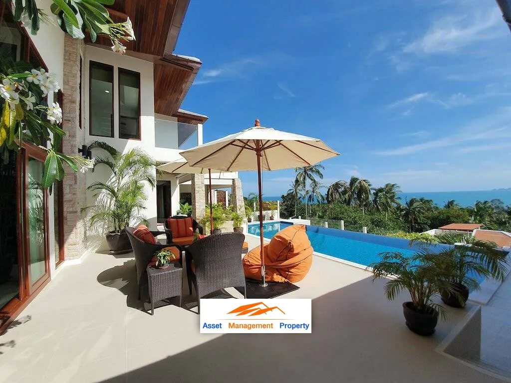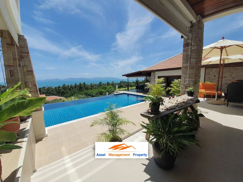 Breathtaking views of the Gulf of Siam, the rolling hills of Koh Phangan, coconut groves, natural forest and rock formations grant peak serenity at this Luxury Seaview Villa for sale! Set within a Bang Por hillside on the northwest coast of the island of Koh Samui, this gated boutique estate is a mere 800 meters to Bang Por beach and waterfront restaurants, with convenience stores found along the main road, plus Chaweng and the airport just a 20 minute distance.