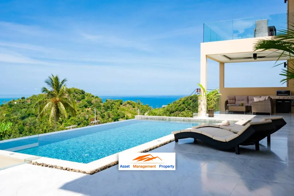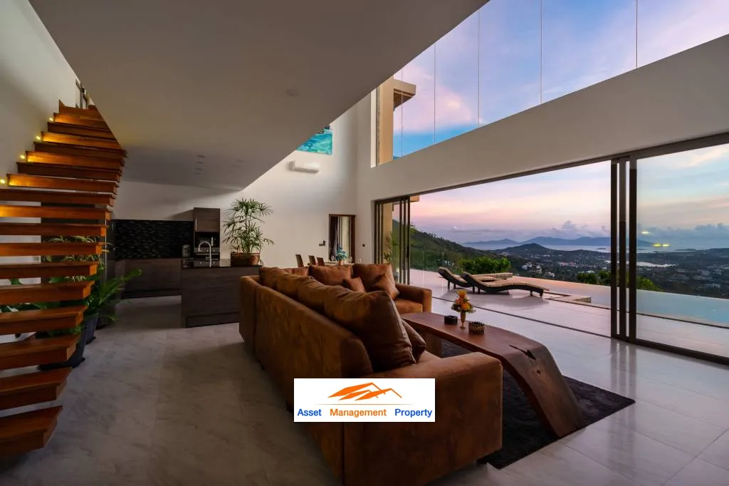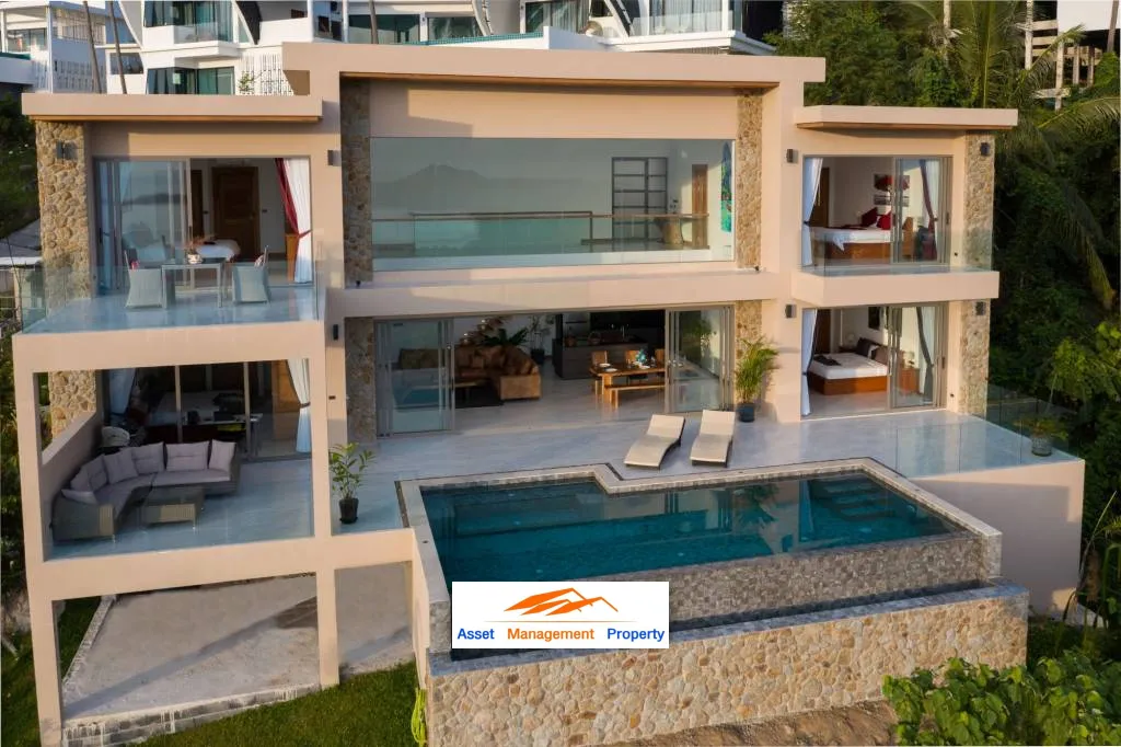 The villa consists of 4-bedrooms and 4-bathrooms spread out over an expansive 525sqm built-up-area. You can experience incredible views of the ocean and east-Samui from every single room. The large pool deck and infinity pool provides the perfect setting for relaxing and enjoying Thailand's tropical climate.