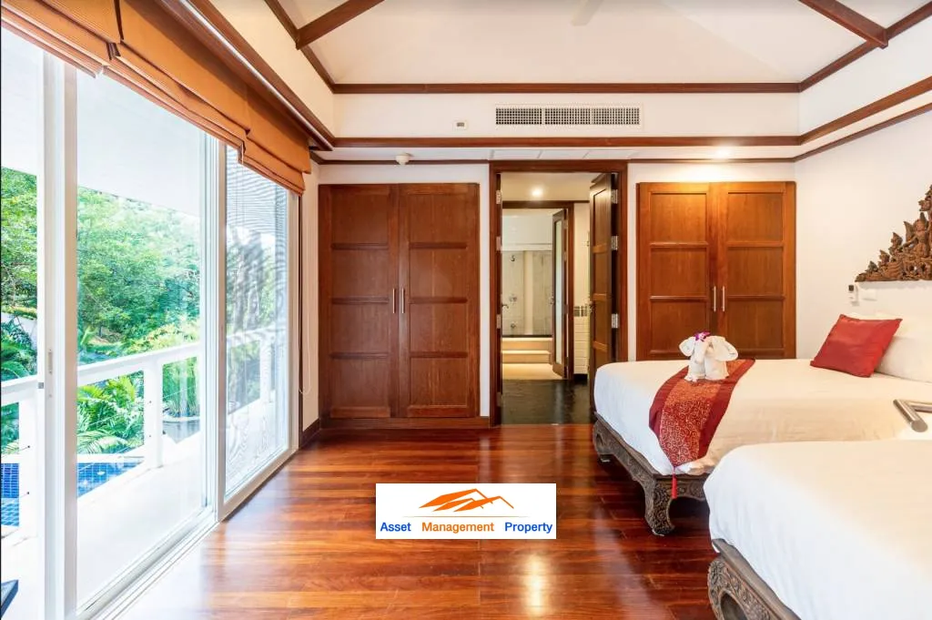 The villa is situated on the exclusive Katamanda villa estate on the south west coast of Phuket in the lush tropical foothills of Kata Noi and is approximately 40km from Phuket airport.Just above the beautiful Kata bay and surrounded by landscaped gardens lie the Villa, a privately owed 3 bedrooms luxury villa built in the traditional Thai style, 10 minutes walk from one of the islands best beaches and close to excellent restaurants and hotels.