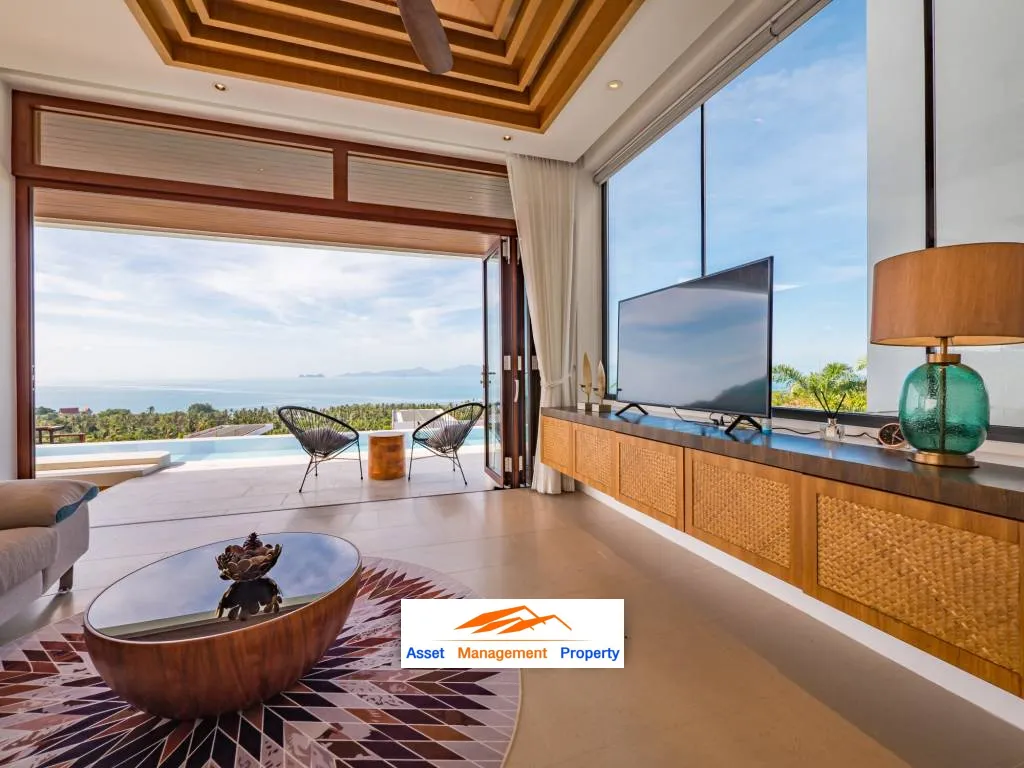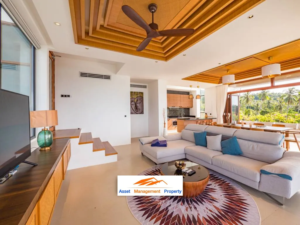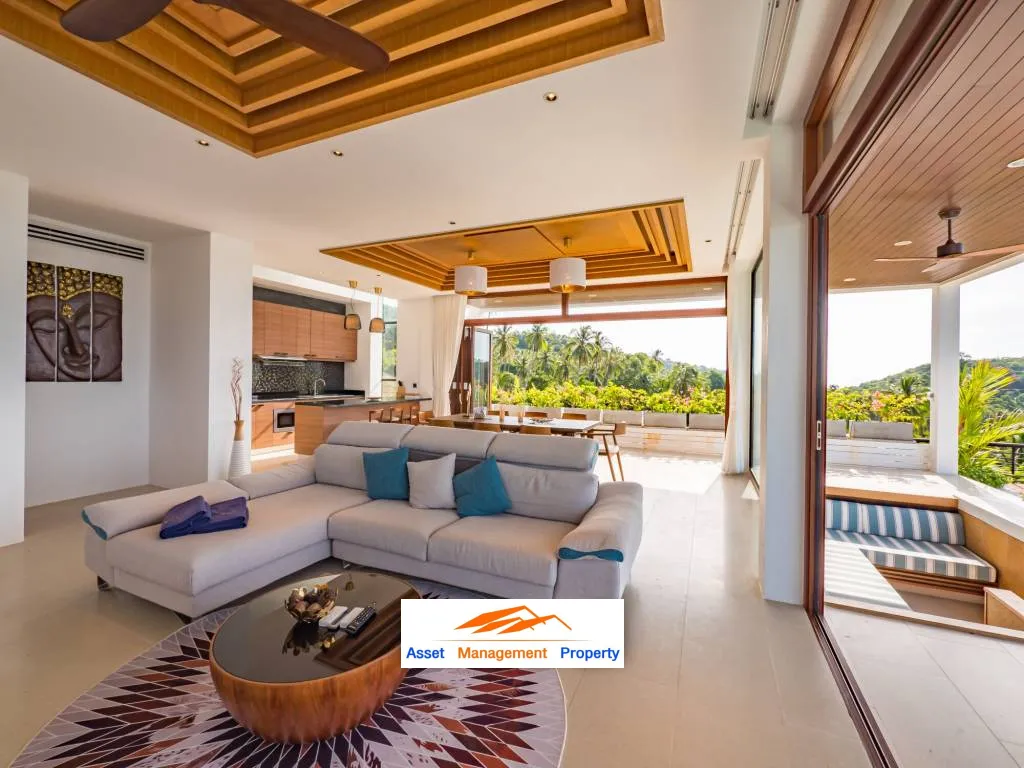Outside, the villa's private pool is the perfect place to relax, surrounded by lush landscaping and stunning sea views. The outdoor living area is equally impressive, with ample seating and dining space for entertaining guests or simply enjoying the tranquil surroundings.