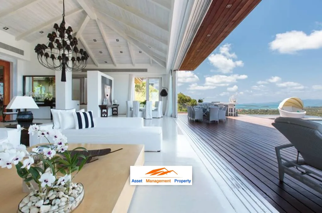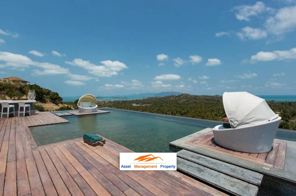 la Michaela sits majestically at the top of a gentle mountainside of Plai Laem, just a few minutes away from the beach and the airport, and this villa has a magnificent 270-degree of sea views overlooking Big Buddha beach and Choeng Mon beach.
